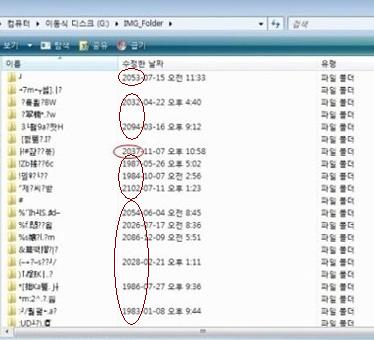 해당 사진은 컴퓨터의 내 폴더를 캡처한 것으로 폴더를 자세히 보면 폴더를 수정한 날짜가 2037년, 2054년, 2026년, 1986년 등으로 표기돼 있어 보는 이들의 놀라움을 자아낸다.
