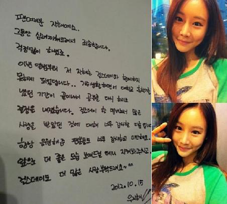 걸스데이 지해는 17일 오후 자신의 트위터에 자필 편지를 공개했다.
