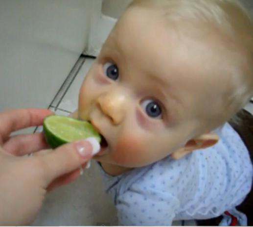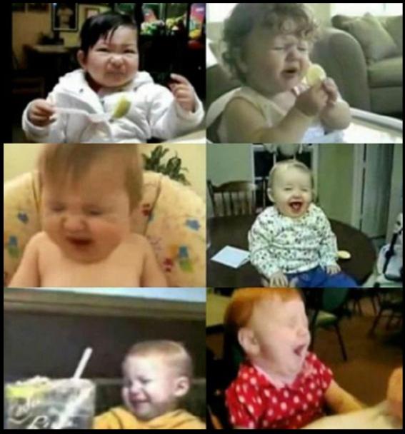 영상 속에는 레몬을 먹은 아기들이 눈을 찡긋거리며 재미있는 표정을 짓는 모습이다.