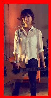 사진 속 김보경은 화이트 셔츠에 블랙 스키니진을 입은 키타를 들고 서 있는 모습이다.