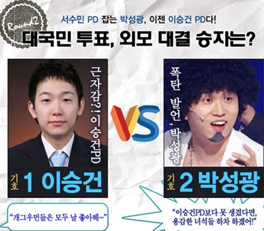 실제로 박성광과 이승건 PD의 외모 대결은 KBS 공식 홈페이지를 통해 공개 투표로 이어졌다.