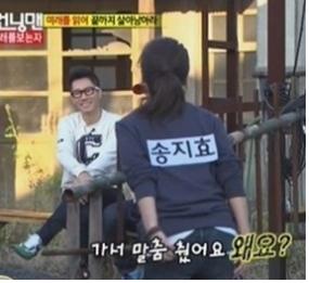 그러자 지석진은“쟤 강남 스타일 나오니까 미치더라”라고 말해 송지효를 당황하게 만들었다.