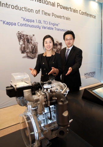 현대·기아차는 기술 설명회에 이어 롤링힐스에서 진행된 ‘2012 현대기아 국제 파워트레인 컨퍼런스’에서 ▲저배기량 고성능 엔진 ‘카파 1.0 터보차저 가솔린 엔진’과 ▲경소형차용 ‘카파 무단변속기(CVT)’를 선보였다.