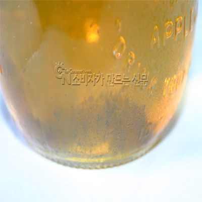 보름후 냉장고에 넣어둔 사과주스를 꺼내 식탁에 올렸는데 병 안에 휴지같은 이물질이 둥둥 떠다녀 깜짝 놀랐다.