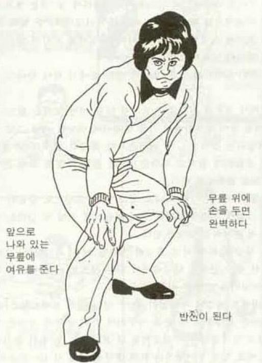 이 그림과 함께 '앞으로 나와 있는 무릎에 여유를 준다', '무릎 위에 손을 두면 완벽하다', '반전이 된다' 등의 자세 잡는 법들도 상세히 기술돼 있다.