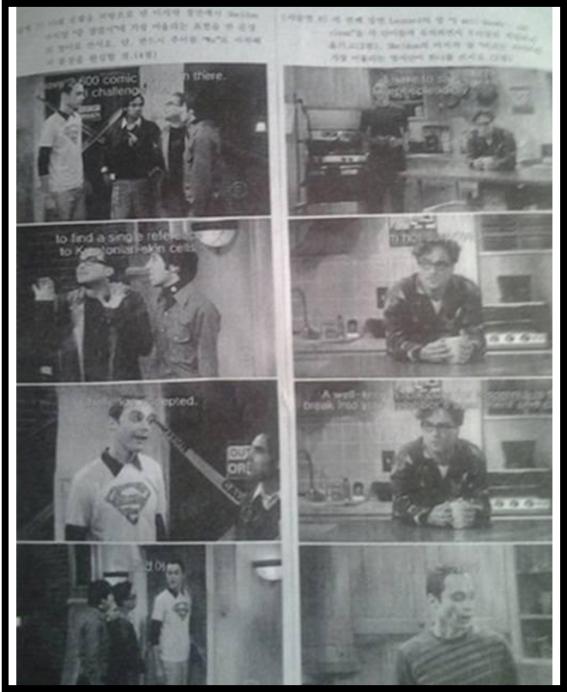 게시물에는 영국 드라마의 장면들을 모아 시험문제를 낸 모습이다.