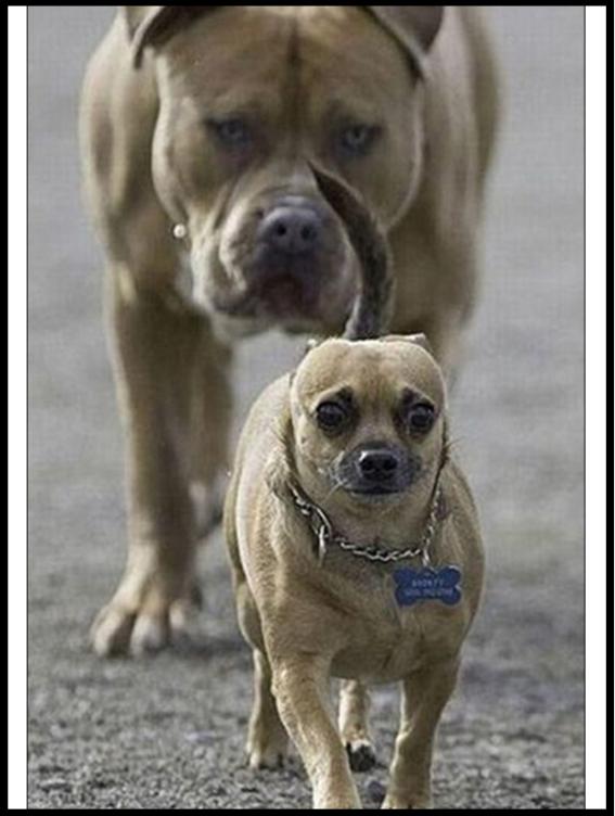 공개된 사진에는 뒤따라 오는 커다란 개를 못본 척하고 걸어가는 개의 모습이 눈에 띈다.