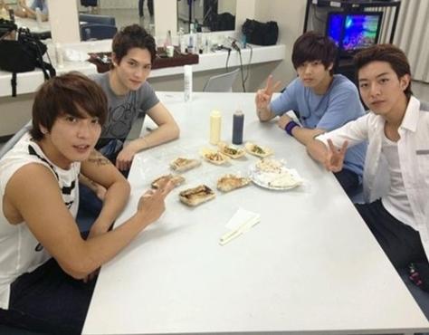 화제의 사진 속에는 씨엔블루 멤버 정용화, 이정신, 이종현, 강민혁이 대기실에 모여 앉아 타코야키를 먹기 직전의 모습을 담고 있다.