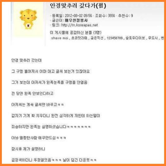 최근 각종 온라인 커뮤니티 게시판에 '안경점의 실수'라는 게시물이 올라왔다.