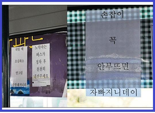 문구 내용은“내릴 때 조심하소. 안그럼 구부래지니더”, “꼭 안부뜨면 자빠지니데이”라는 사투리가 적혀 있어 눈길을 끈다.