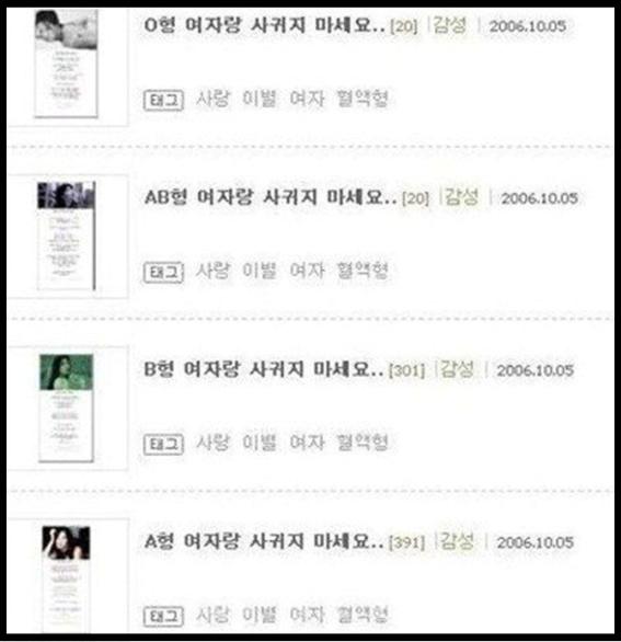 게시물에는 ‘AB형 여자랑 사귀지 마세요’, ‘A형 여자랑 사귀지 마세요’, ‘O형 여자랑 사귀지 마세요’, 'B형 여자랑 사귀지 마세요'라고 적혀있다.