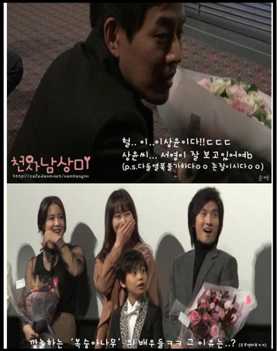 이상윤은 남상미의 무대 인사 중에 무대 아래에서 기다리다 꽃다발을 들고 깜짝 등장한다.