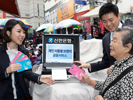 이에 따라 신한은행은 'S-KIT'를 활용해 평소 은행 영업 시간 중 방문이 어려웠던 공단 밀집 지역의 근로자나 군부대 장병, 시장 상인, 업무가 바쁜 직장인들을 대상으로 본격적인 찾아가는 금융 서비스를 실시한다.
