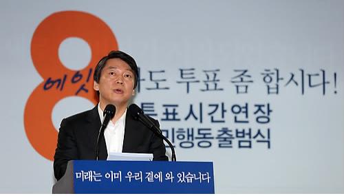 안 후보는 이날 공평동 캠프에서 열린 ‘투표시간연장 국민행동 출범식’에 참석해 “(국민은) 국민청원법에 의거해 정부에 투표시간 연장을 공식적으로 요구할 수 있다”고 말했다.