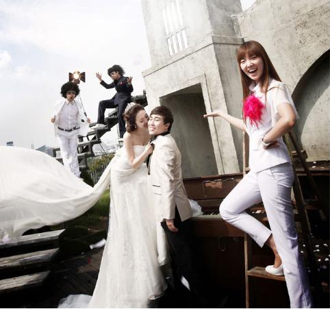 양선일 결혼식의 주례는 개그맨 전유성이 맡았으며 사회는 동료 개그맨 허경환이 나섰다. 축가는 양선일과 ‘개그콘서트’의 코너 ‘용감한 녀석들’에서 호흡을 맞추고 있는 개그맨 정태호, 박성광, 신보라가 불렀다. (사진-메리웰웨딩 홈페이지)