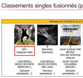 공개된 사진을 보면 프랑스 싱글 차트에서 1위에 오른 싸이(PSY)의 이름이 스파이(SPY)로 기록돼 있다.