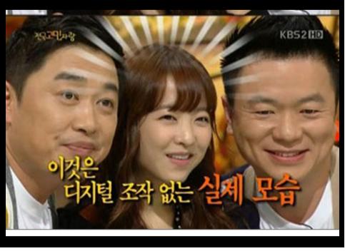 29일 방송된 KBS 2TV '대국민 토크쇼 안녕하세요'에서 박보영과 컬투 정찬우, 김태균의 얼굴 비교 모습이 방송됐다.