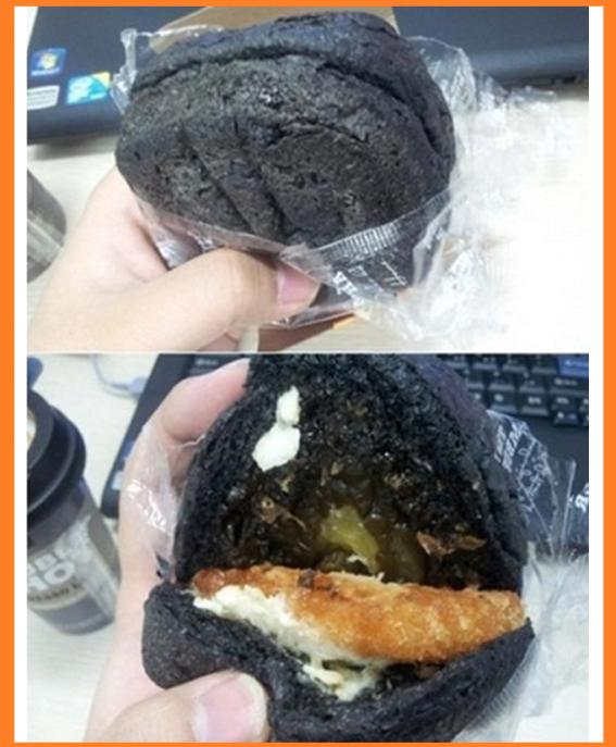 공개된 사진 속 햄버거는 검은 색 빵 안에 햄버거 패티와 피클 등이 들어가 있다.