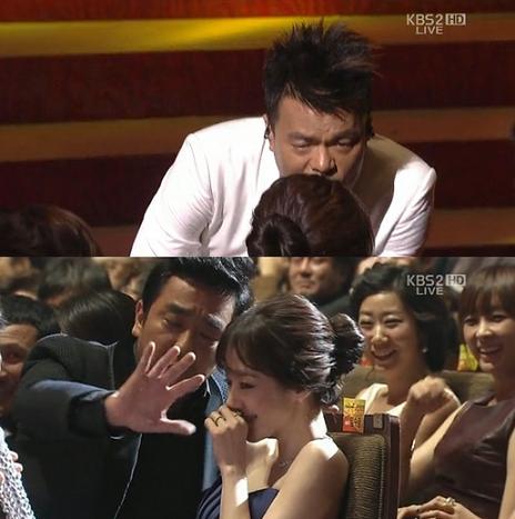 이에 박진영은 배우 조민수와 엄정화에게 다가가 퍼포먼스를 펼쳤다.