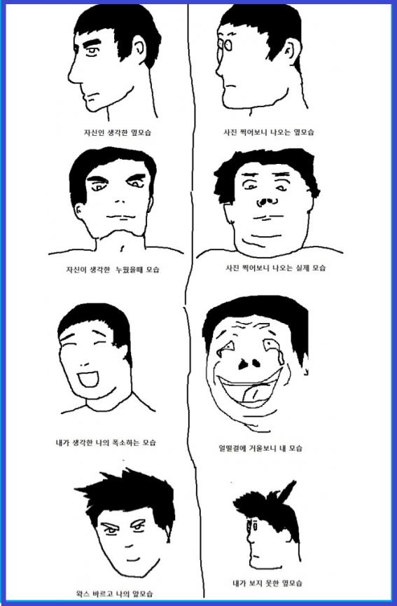 게시물에는 ‘자신이 생각하고 있는 모습’과 ‘사진을 찍어본 자신의 실제 모습’이 비교돼 있다.