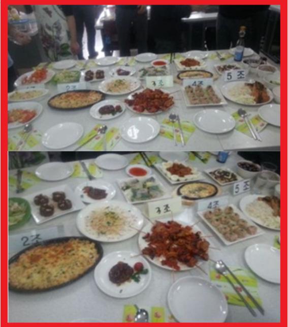 공개된 사진에는 남자 고등학교에서 가정실습 시간에 조별로 만든 음식을 식탁 위에 차려놓은 모습이다.