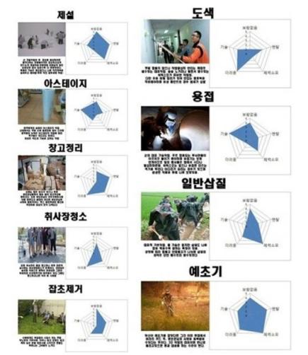 게시물에 따르면 군인의 경우 어려운 기술이 필요 없는 일반 삽질, 창고 정리, 잡초제거, 취사장 청소부터 전문적인 기술을 요하는 예초기와 용접, 아스테이지 등을 전부 소화할 수 있는 것으로 설명된다.
