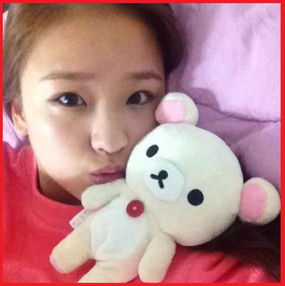 공개된 사진에서 손연재는 곰인형과 함께 나란히 누워 셀카를 찍고 있다.