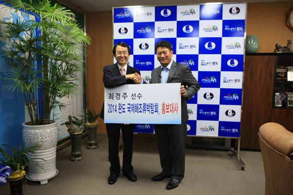 최경주 선수는 "해조류의 우수성과 박람회 개최를 널리 알릴 수 있도록 최선을 다 하겠다"고 말했다. 김종식 완도군수는 "2014 완도 국제해조류박람회 홍보대사로서 전 세계에 완도 해조류를 알려 줄 것"을 당부했다.