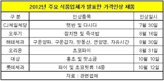 사조해표와 대림, 매일유업, 빙그레, 삼립식품, 풀무원, 해태제과 등은 가격인상 자체를 발표하지 않았다.