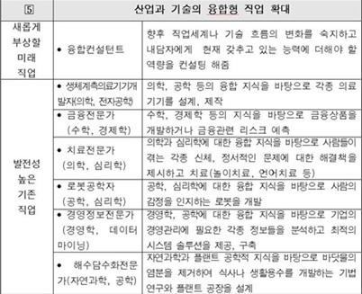 또한, 첨단기술의 발전으로 실버로봇서비스기획자, 항공우주공학자, 해양공학자 등이 유망해지고, 로봇감성치료전문가, 웨어러블로봇개발자(wearable robot engineer) 등이 새로운 직업명단에 이름을 올릴 것으로 보인다.