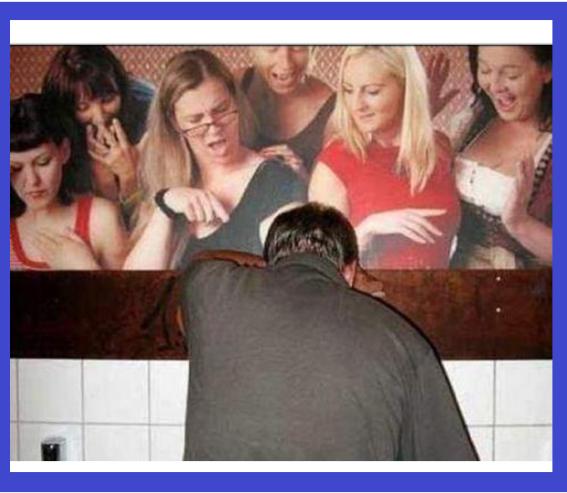 이 사진에는 남자 소변기 위에 여성들이 야유하는 듯한 표정이 담겨 있어 웃음을 준다.