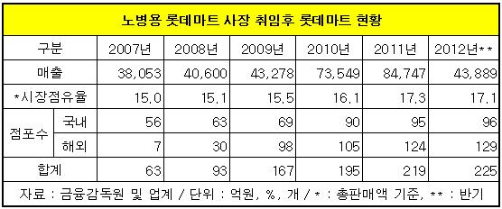 덕분에 2007년 3조8천여 억원이었던 롯데마트의 매출은 지난해 8조4천700여 억원으로 불과 4년 만에 두배 넘게 증가했고, 대형마트 시장점유율은 같은 기간 15%에서 17.3%로 높아졌다.