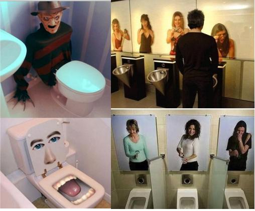 각종 온라인커뮤니티 게시판에는 '악마의 화장실' 시리즈로 남성용 소변기 벽면에 다양한 여성들의 모습으로 인테리어 되어 있는 곳곳의 화장실 풍경(?)이 소개됐다.