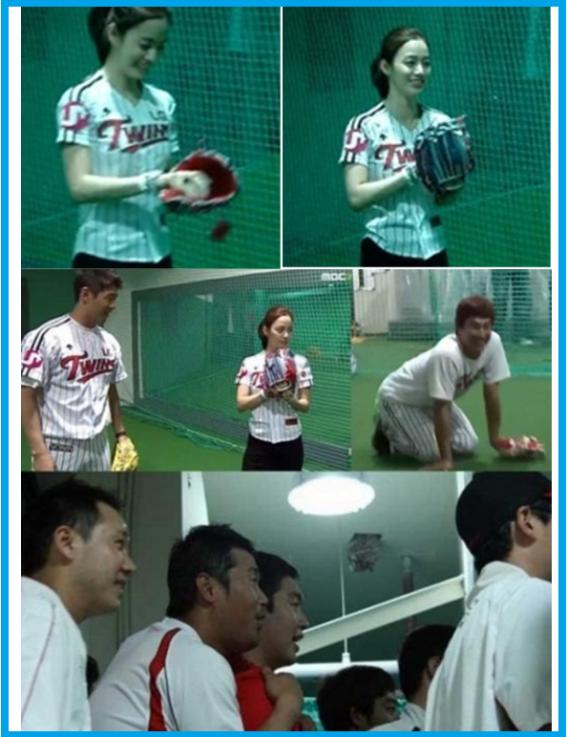 이날 김태희의 시구 모습에 선수들은 모두 입을 벌리고 넋이 나가 있는 모습을 보여줘 웃음을 주고 있다.
