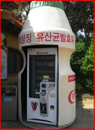 공개된 사진은 제주도의 한 공원에 위치한 자판기로 요구르트 모양의 큰 틀 안에 자판기가 들어있는 모습이다.