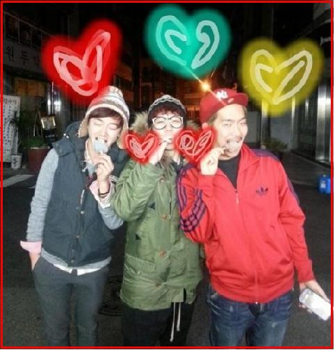 블락비 멤버 태일은 2일 자신의 트위터에 "어제 오랜만에~ 이제는 너무 유명해져버린 허니지 태현이 형과 재현이 형을 만났다. 간만에 만나서 예전에 같이 팀 활동 할 때 얘기하면서 재밌게 놀았다. 재현이 형은 예전이나 지금이나 여전히 동안"이란 글과 함께 한 장의 사진을 덧붙였다.