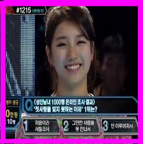 이날 ‘첫사랑을 잊지 못하는 이유’로 설문조사한 결과 1위는 무엇일까라는 문제가 공개됐다. 보기로는 1번 처음이라 서툴러서, 2번 그만한 사람을 못 만나서, 3번 안 이루어져서가 제시됐다.