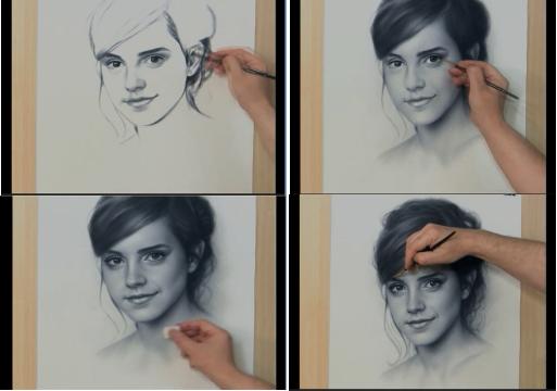 5분여간의 시간으로 만들어진 동영상에는 실사에 버금가는 엠마 왓슨의 모습을 그리는 모습이 담겨 있다.