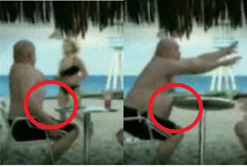 왼쪽에 앉아있는 남자는 미인이 지나가기 전과 후의 확연한 차이를 보이는 뱃살로 보는 이의 폭소를 자아낸다. 미인이 지나갈때 놀라울 정도로 쏙 들어갔던 뱃살이 직후 바로 제자리를 찾으면서 그 충격에 앞 테이프이 쓰려지면 음료등이 쏟아진 것.