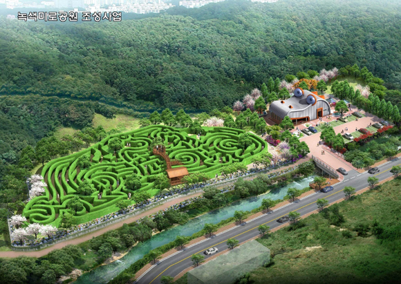 6일 해남군(군수 박철환)에 따르면 녹색미로공원은 도립공원내(삼산면 구림리) 1만2천500㎡의 부지에 2013년 완공을 목표로 총 50억원의 사업비를 투자한다.