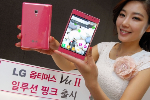 ‘옵티머스 Vu: II 핑크’는 전·후면 모두 핑크 컬러가 적용됐다. 화이트, 블루블랙에 이어 핑크 컬러가 출시되면서 소비자 선택의 폭이 넓어졌다.