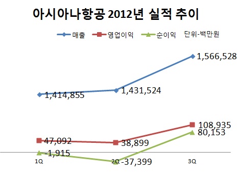 아시아나 관계자는 "4분기에도 출국, 입국, 환승 등 여객 수요층의 다양화로 견고한 여행수요가 유지될 것으로 본다"며 "화물 부문에서도 아이폰5, 아이패드미니 등 애플의 신제품 발표로 전년 수준의 수익률을 유지할 것으로 기대한다"고 말했다.
