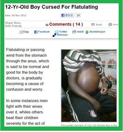 가나에 살고 있는 12살 소년은 방귀로 저주받고 있는 고통을 호소했다.