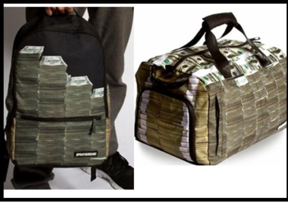 이 돈 자랑 가방은 미국의 한 인터넷 쇼핑몰에서 선보인 것으로 수북히 쌓인 돈다발 그림이 눈에 띈다.