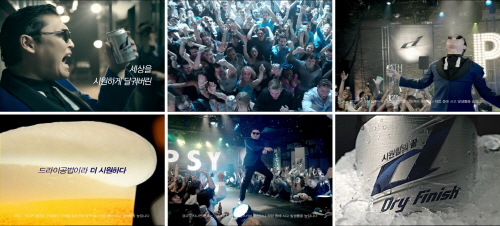 8일 하이트진로에 따르면 이번 광고는 싸이가 공연에서 보여주는 유쾌하고 열정적인 모습을 자연스럽게 연출해 ‘끝까지 시원한 맥주’ d가 필요한 순간을 효과적으로 표현하는데 중점을 뒀다. 광고에서 싸이는 촬영시 주로 이용하는 무알콜 맥주 대신 직접 d를 마시며 관중 역할의 엑스트라들에게 맥주를 뿌리고 함성을 지르는 등 실제 공연장을 방불케하는 퍼포먼스를 선보였다.