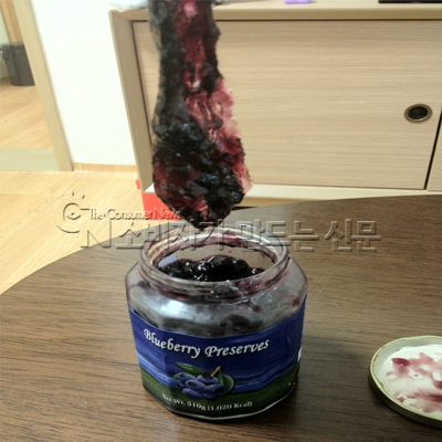 냉장고 속에 보관중이던 잼이 굳은거다 싶어 숟가락을 용기 바닥까지 집어넣어 쑥 퍼 올리자 길쭉한 이물질이 걸려나왔다. 15cm가 훌쩍 넘는 길이의 긴 비닐뭉치란 사실을 확인하자 황당함을 감추기 어려웠다.