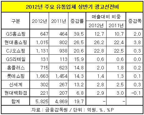 특히 홈쇼핑업체의 광고선전비 지출이 다른 유통업체에 비해 크게 늘었다.