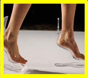아크릴, 비닐 등으로 제작된 이 허공 투명 하이힐은 굽부터 신발 부분까지 투명해 구두를 신지 않은 듯한 착시를 일으킨다.