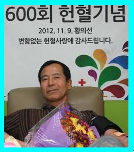 황 씨는 군복무 중이던 1975년 휴가 길 우연히 용산역 헌혈차량에서 헌혈을 한 후, 거의 2주마다 헌혈에 참가해 이번에 600번째를 맞았다.