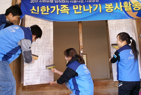 한편 신한은행은 '금융의 힘으로 세상을 이롭게 한다'는 경영이념 아래 노사합의를 통한 임직원 기부활동인 '신한가족 만나기' 활동을 통해 2012년 1월부터 매월 임직원들이 자발적으로 급여에서 1만원씩을 기부하고 있으며 소외계층의 의료비와 문화재 보전활동을 위해 109개 단체에 총 4억6천여만원을 지원한 바 있다.